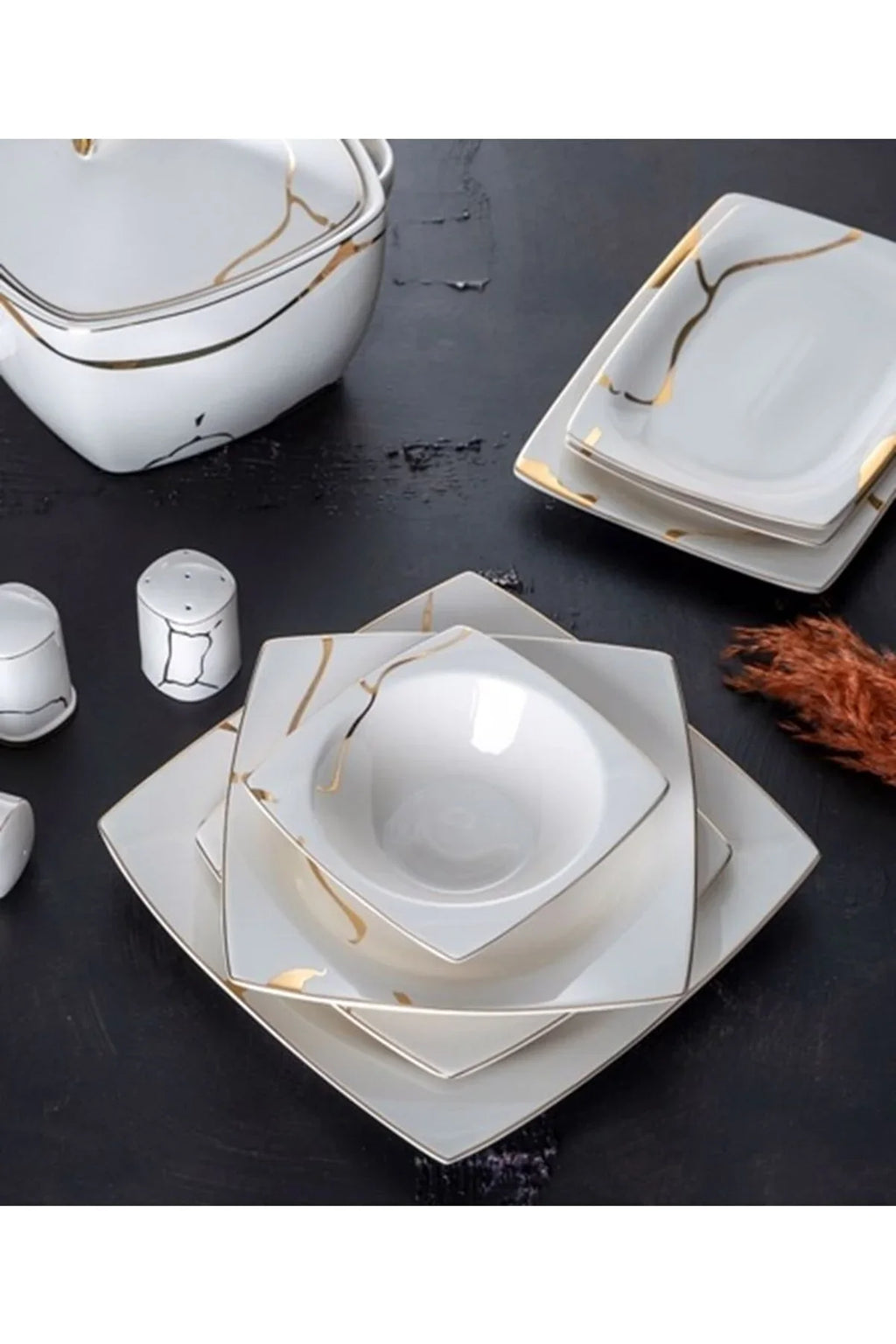 ACAR LAVINA Service de table 12 personnes 60 pièces blanc doré