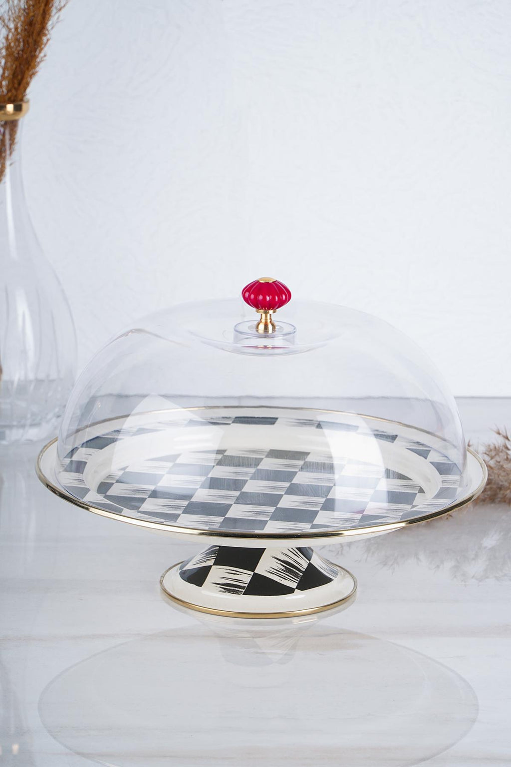 ACAR QUALITA KING présentoir à gâteau en émail avec couvercle motif noir et blanc