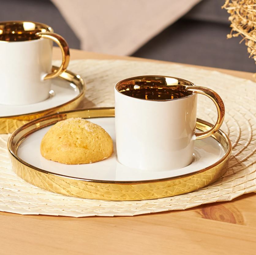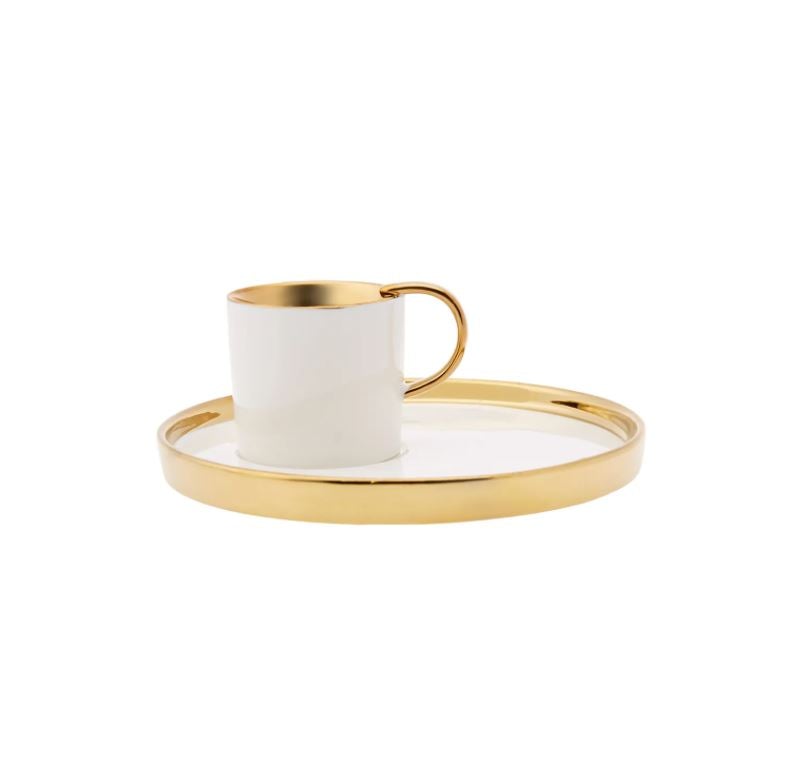 KARACA LEVIN Set de tasses à café pour 2 personnes blanc et doré
