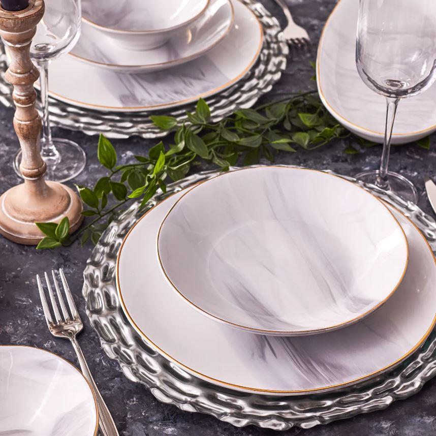 KARACA RIA GREY Service de table 39 pièces 12 personnes