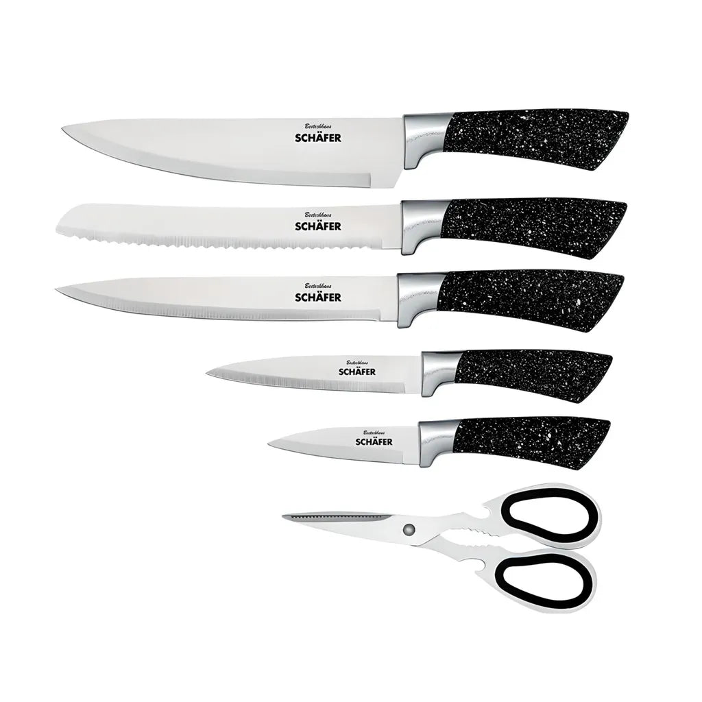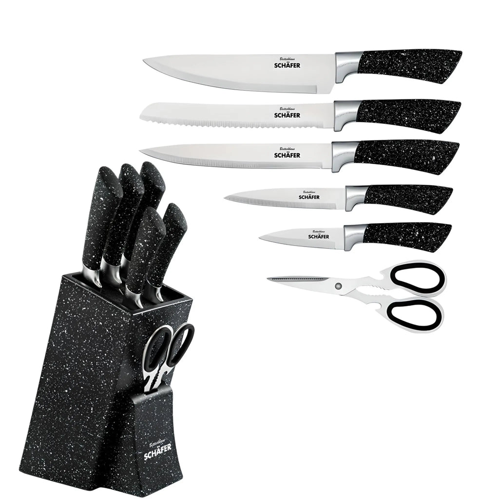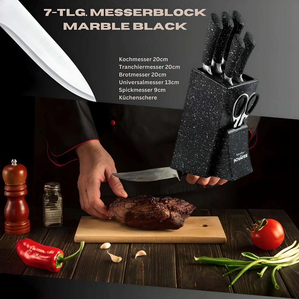 SCHÄFER Set de couteaux 7 pièces Marbre Noir
