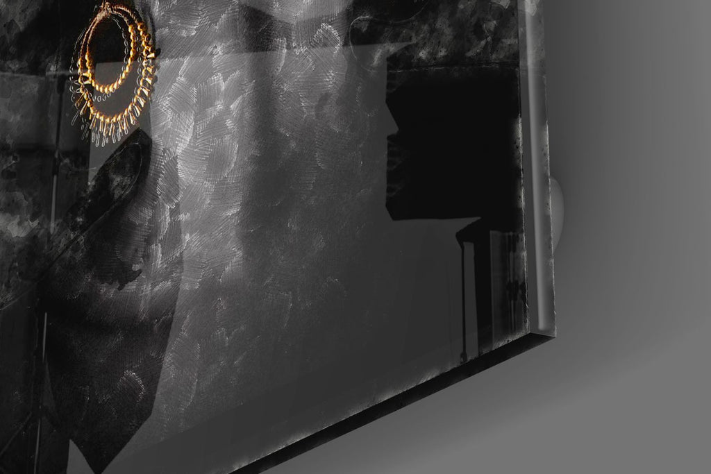 Tableau en verre - Femme africaine avec maquillage dorés et bijoux - Fond noir