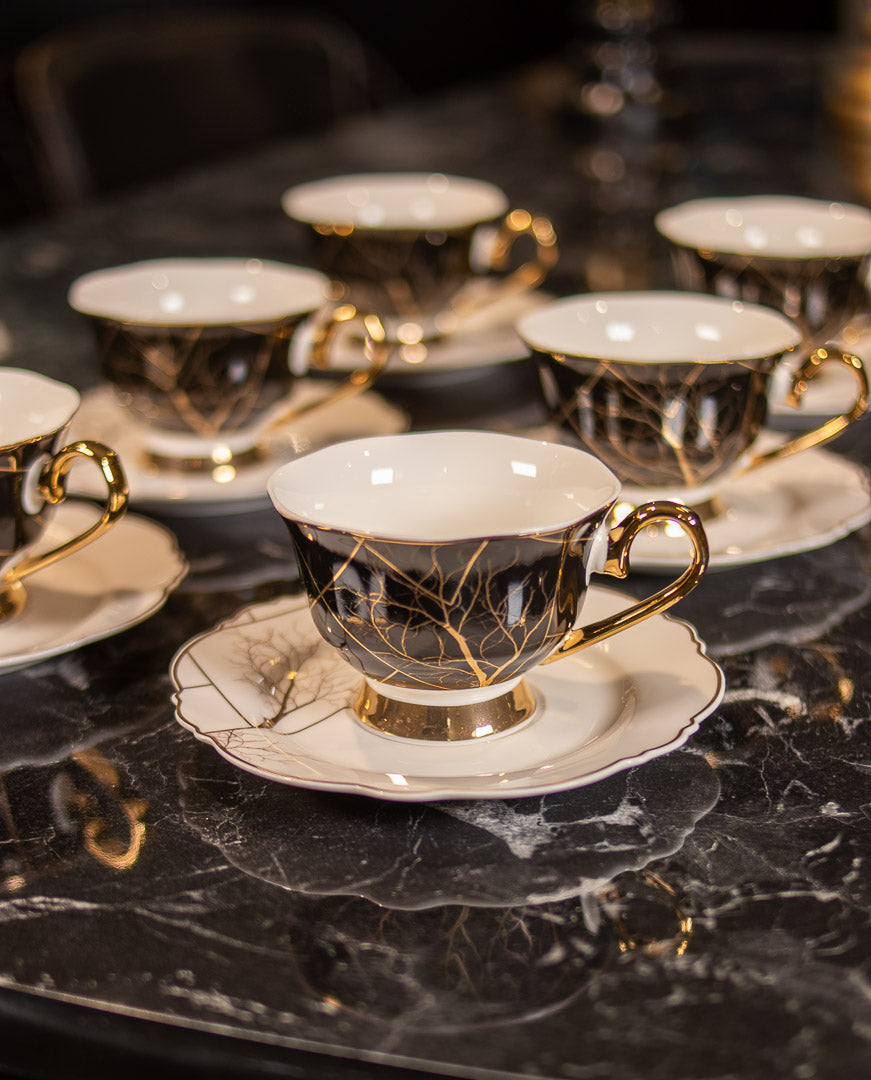 ZELLERFELD Set de tasses à thé noir/blanc 12 pièces 6 personnes
